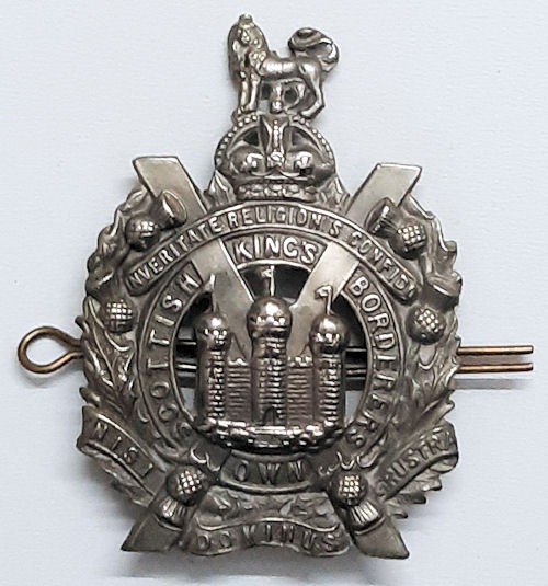 Originele (géén imitatie) Kings Own Scottish Borderers Officers, Royal Scot Grey's Cap Badge (ca. 4.8 x 6.7 cm)